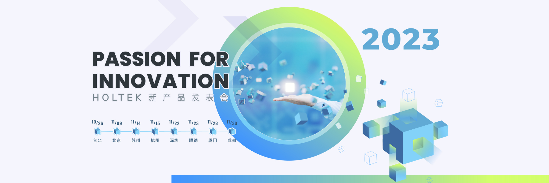 专业单片机IC设计领导厂商合泰半导体(HOLTEK)将于10月26日至11月30日于台湾及大陆地区巡回展开2023年新产品发表会,将展现合泰半导体深耕于智能生活与安全防护应用领域的全新IC/MCU开发成果,相关发表主题包括:8/32-bit MCU、健康与测量、无线通信、BLDC电机控制、电池及功率控制、电源管理、安全防护、触控应用、专业传感器模块等领域的全新技术与产品发表。